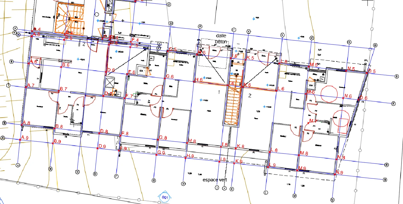 - Implantation et contrôle des bâtiments et des ouvrages avec génération automatique de plans.