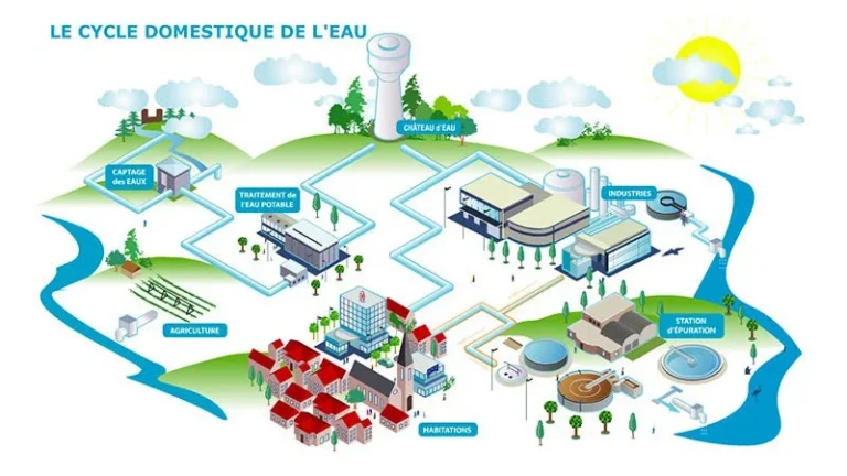 L’eau captée dans le réseau est transportée à la station d’assainissement et de potabilisation pour y être traitée, assainie et rendue potable, c’est-à-dire conforme à la règlementation en vigueur. Les critères d’assainissement et de potabilité prennent notamment en compte des paramètres microbiologiques, chimiques et organoleptiques.